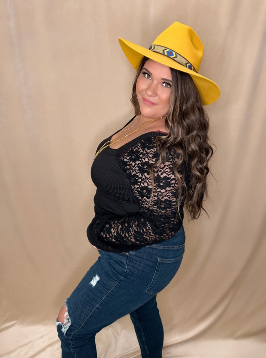 Black Lace Puff Sleeve Top