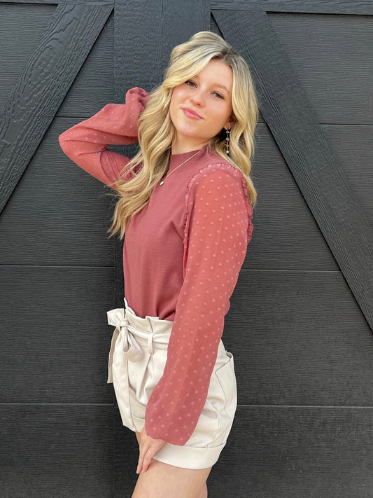 Mauve Swiss Dot Sleeve Top