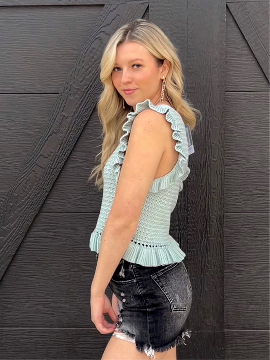 Knitted Ruffle Sleeve Top