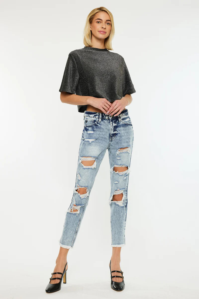 KanCan High Rise Distressed MOM Jean
